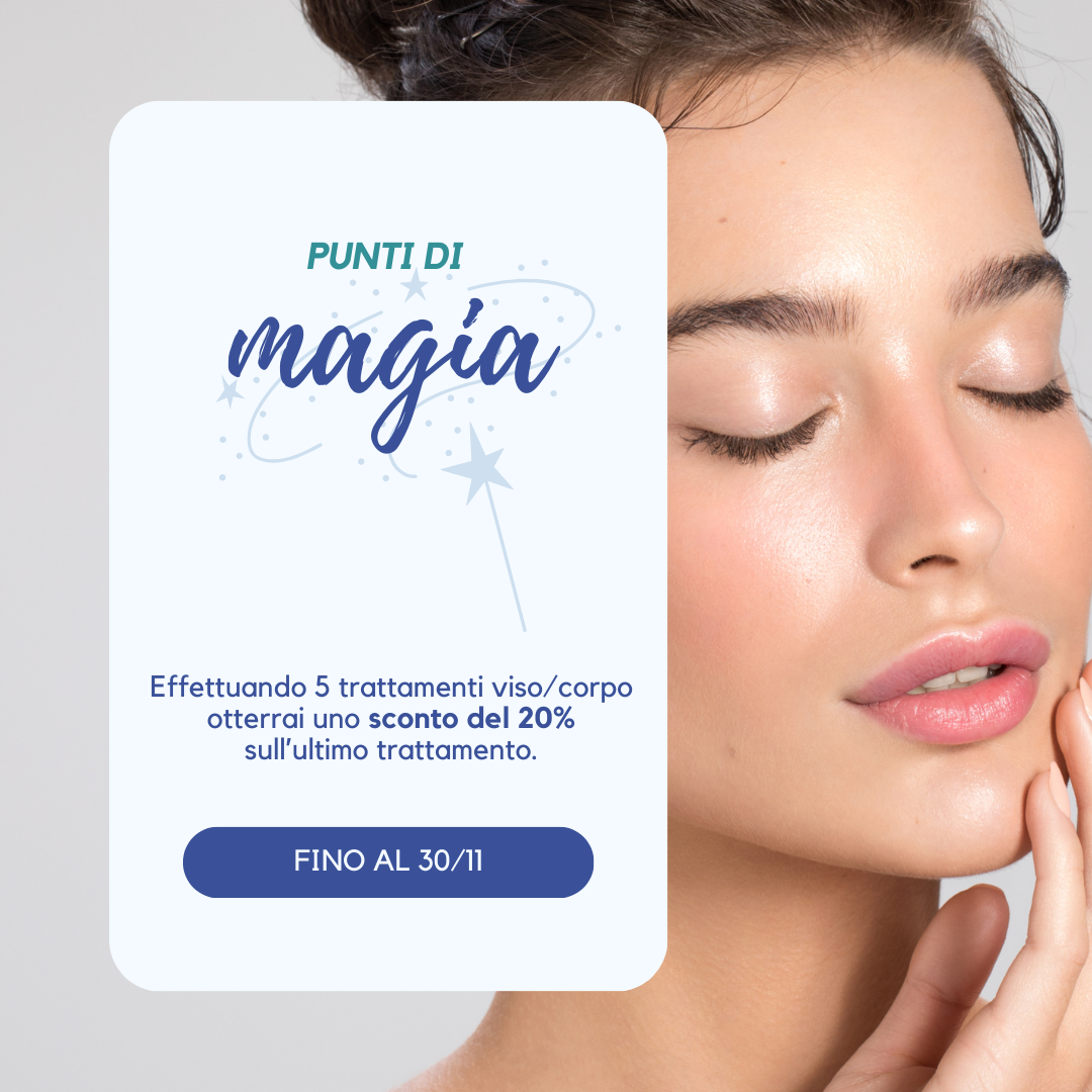 Effettuando 5 trattamenti viso/corpo otterrai uno sconto del 20% sull'ultimo trattamento.